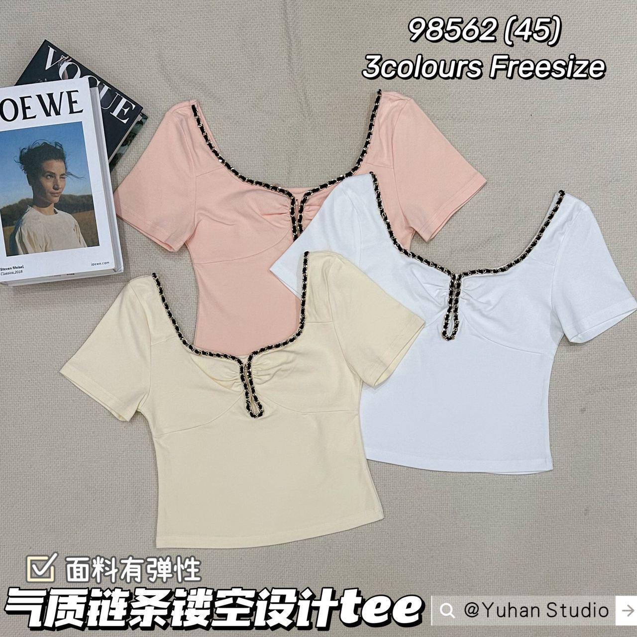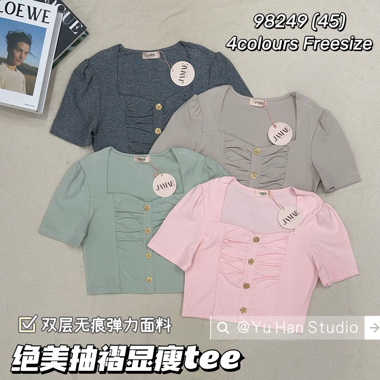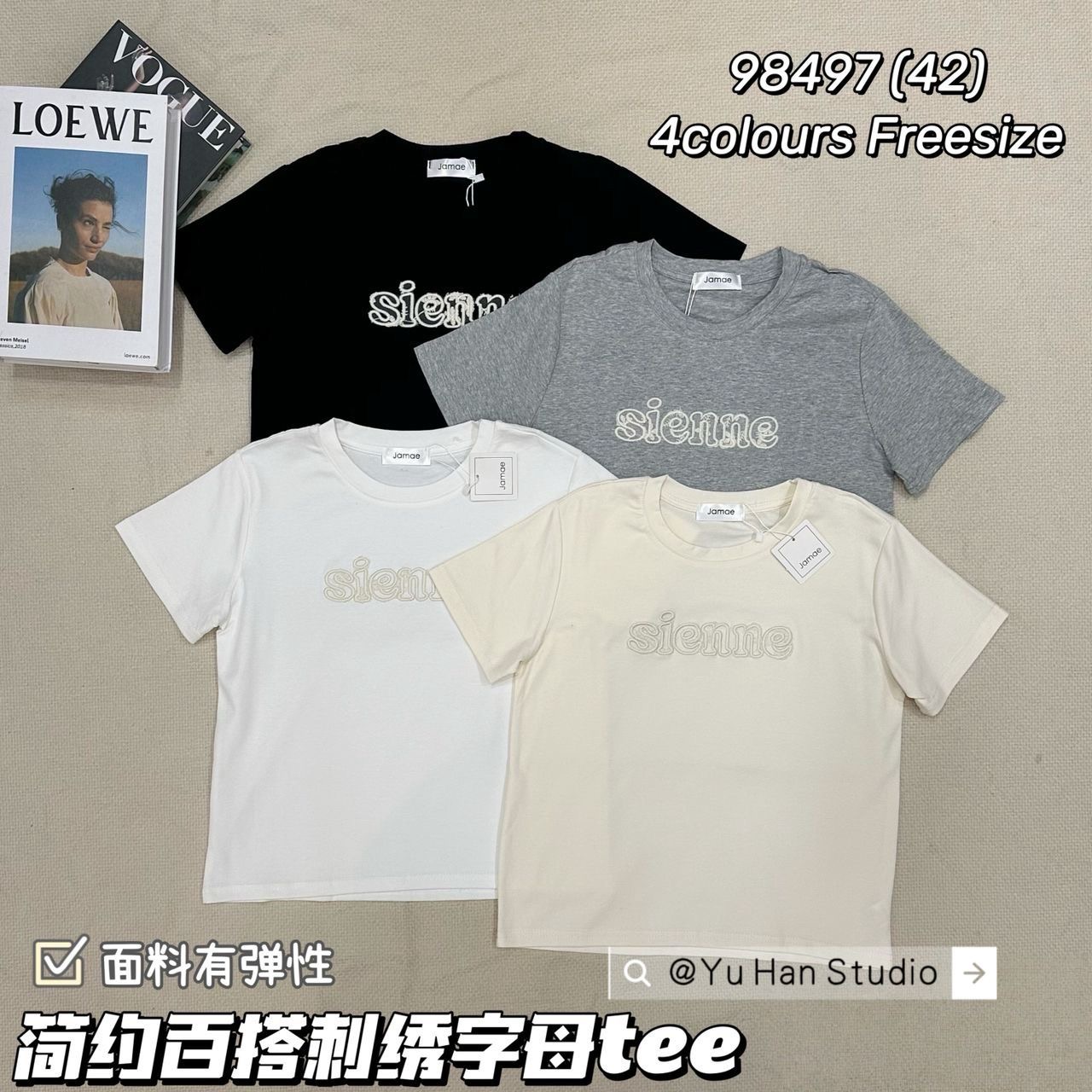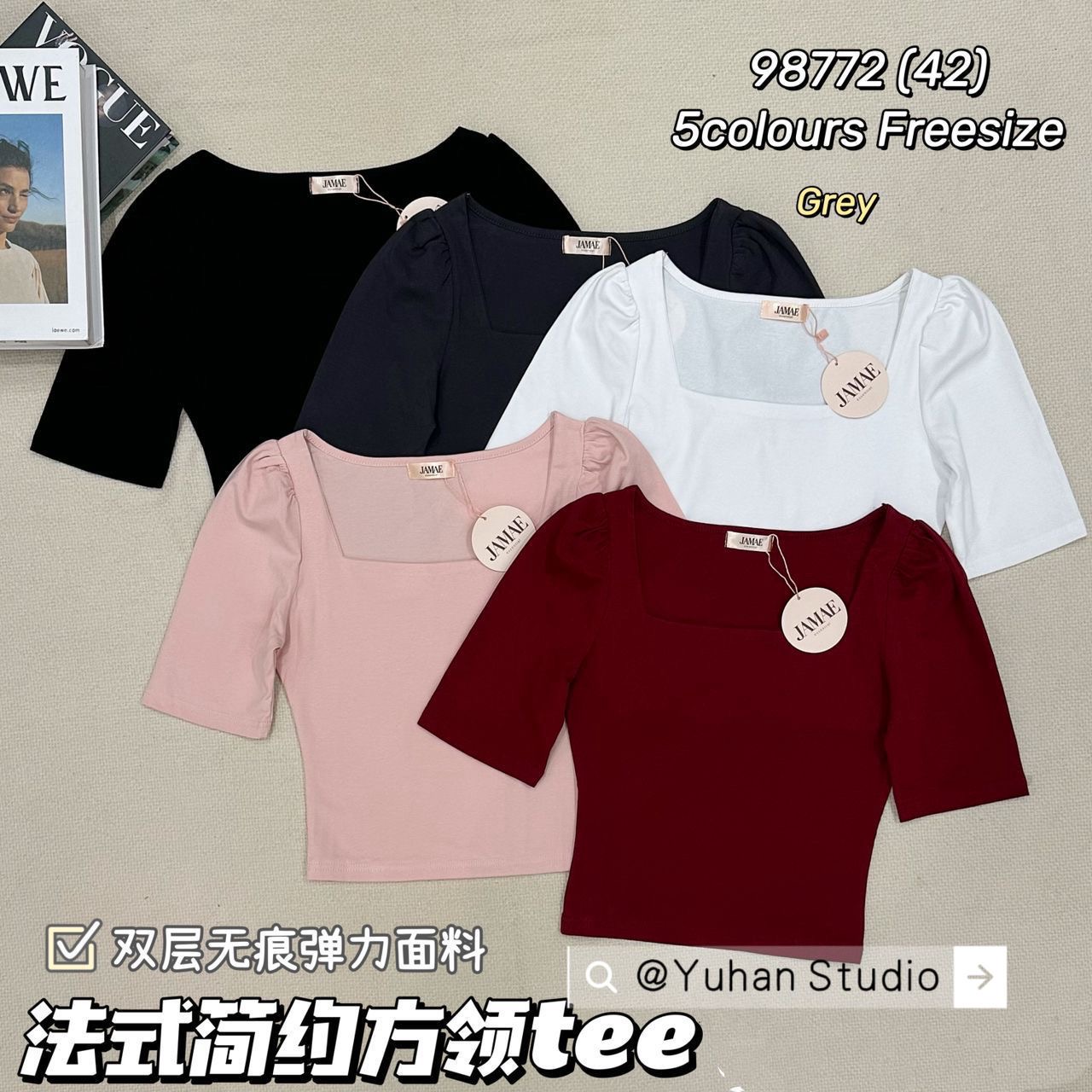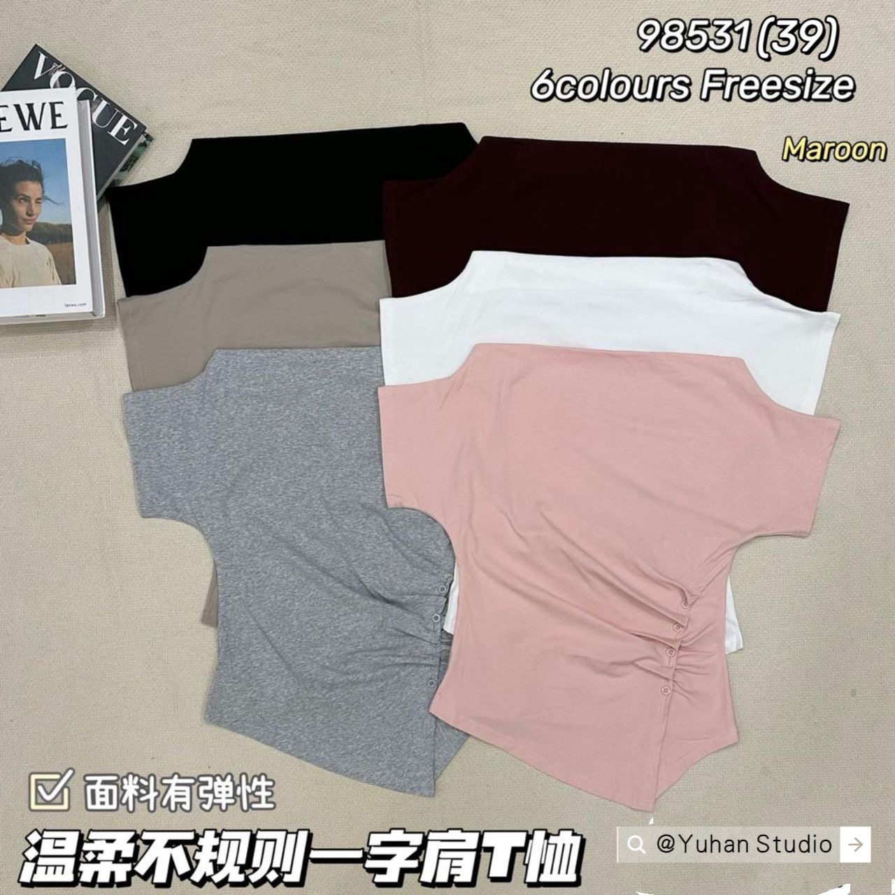 . Ruched Button Tee Puff Sleeve stripe Tee Embroidery Basic Tee Asym Off-Shoulder Tee Lace-Trim Ruched Neck Tee Square-Neck Puff Tee Minimal Basic Tee Pleated short Pant